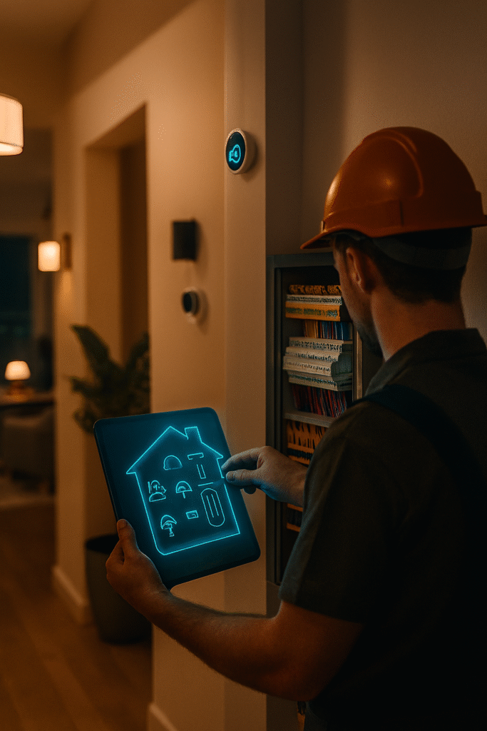 - Vezava in konfiguracija pametnih naprav (KNX, Zigbee, WiFi, lokalne rešitve)